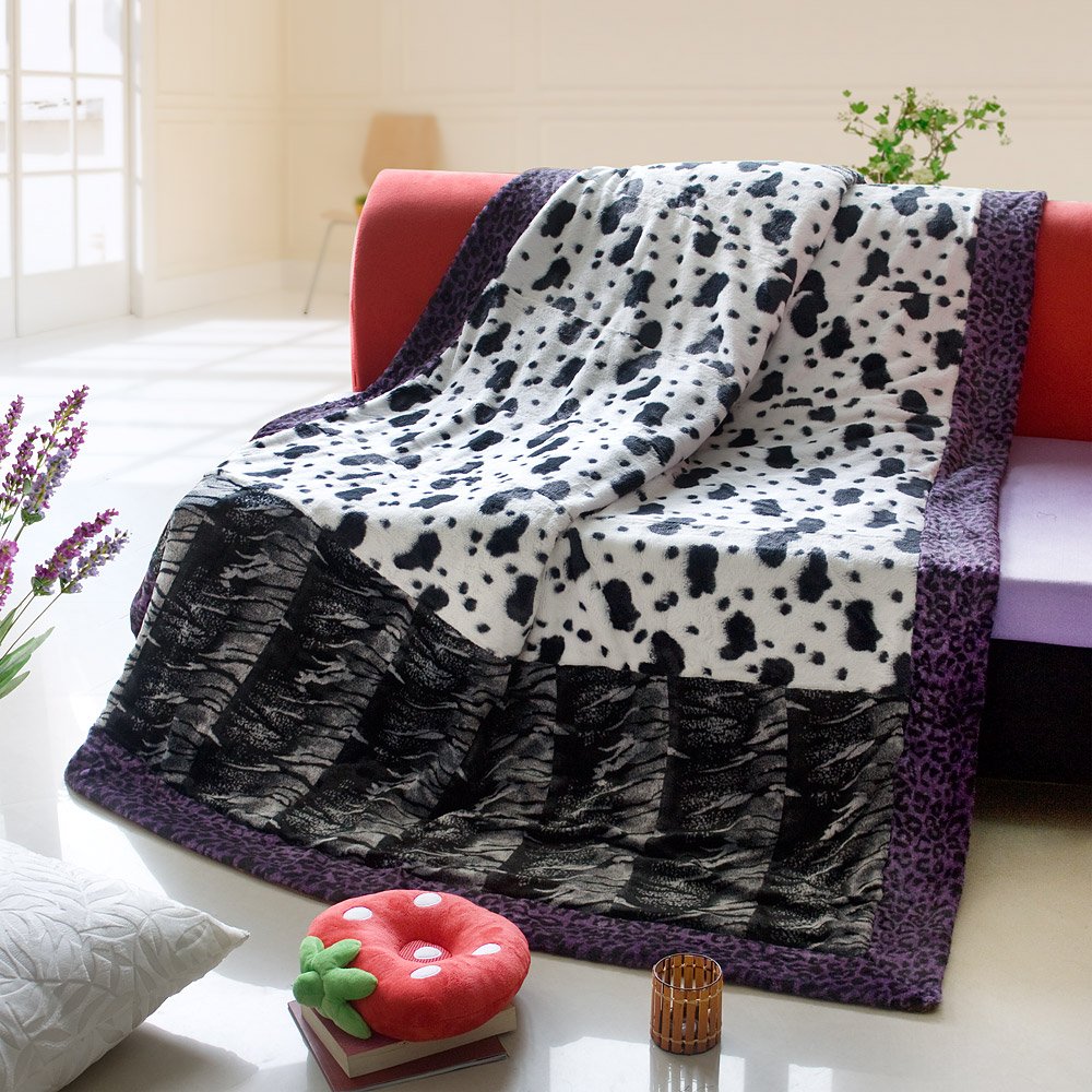 This animal skin patchwork throw blanket measures 86.6 by 63 inches with 22.5 oz filling. Comfort, warmth and stylish designs.